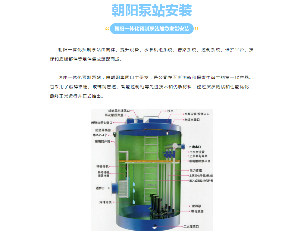 朝陽集團(tuán)應(yīng)工業(yè)園客戶的具體需求,按時(shí)按需完成并發(fā)貨。定制的一體化預(yù)制泵站,在設(shè)計(jì)上充分考慮了客戶的實(shí)際使用情況,經(jīng)過嚴(yán)格測試和檢驗(yàn),確保其性能穩(wěn)定可靠,壽命長久。