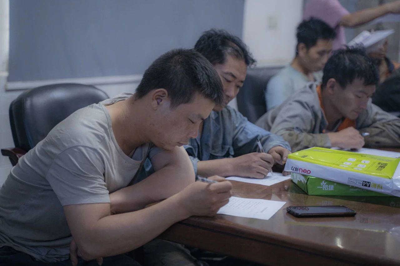 在對行車、有限作業(yè)空間安全操作標(biāo)準(zhǔn)進(jìn)行細(xì)致學(xué)習(xí)后,全體參會人員一同觀看安全教育視頻,了解車間作業(yè)中發(fā)生的真實事故,以及事故帶來的人員財產(chǎn)傷害。安全生產(chǎn)教育培訓(xùn)的環(huán)節(jié),車間工人進(jìn)行行車安全知識培訓(xùn)考試。安環(huán)委主任表示,他希望通過現(xiàn)場筆試這一方式,檢驗大家此次培訓(xùn)掌握情況,同時進(jìn)一步加深鞏固安全知識。